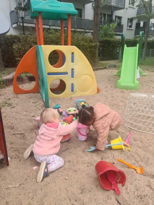 Es gibt folgende Besonderheiten: Wir gehen jeden Tag auf Entdeckungsreise, auf den vielen Nahegelegenen Spielplätzen, in unserem Verkehrsberuhigten Gebiet.